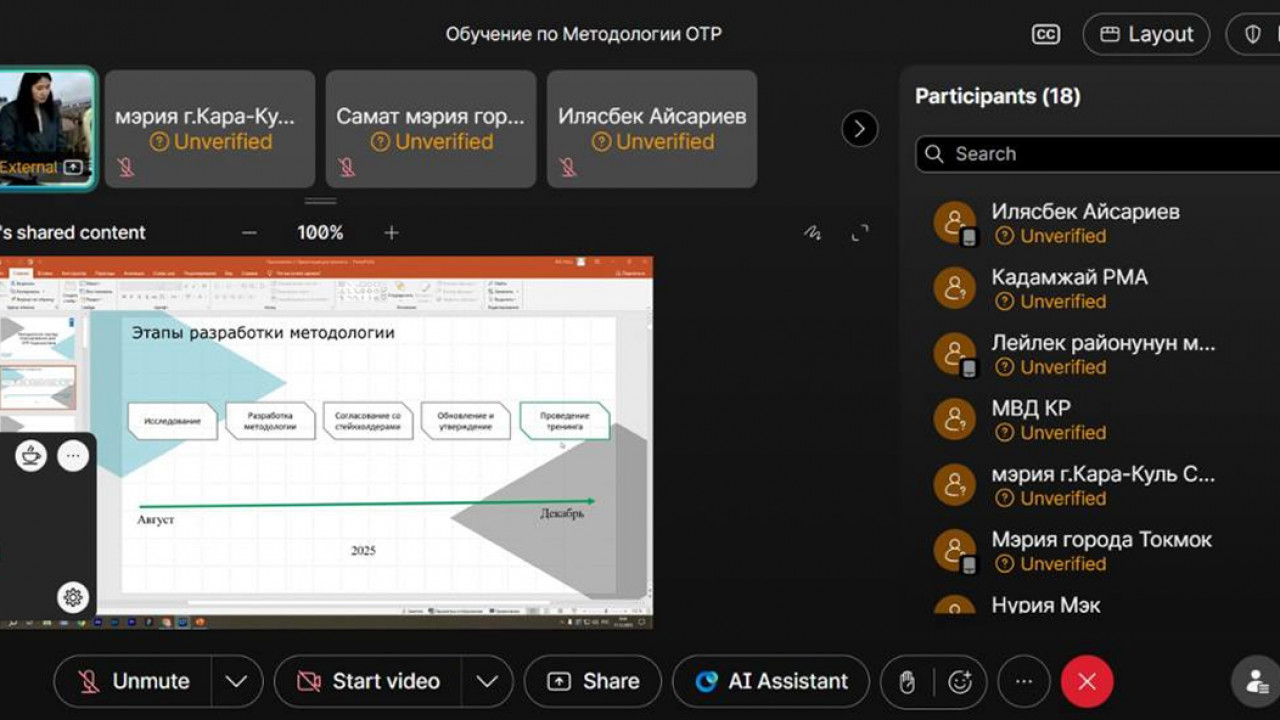 Министерство экономики и коммерции Кыргызской Республики при поддержке ПРООН-КР провело трёхдневный практико-ориентированный тренинг для сотрудников министерства и органов местного самоуправления всех областей. Тренинг направлен на формирование современного подхода к территориальному развитию, подготовку по ключевым аспектам мастер-планирования — от анализа территорий и формирования видения развития до подготовки проектных решений и работы с данными. Тренинг включал практические задания, кейсы и обсуждение международных подходов.